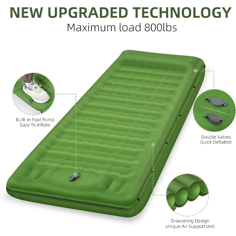 This extra-thick 5-inch camping sleeping pad provides ultimate comfort for your camping experience. The built-in foot pump design allows for quick inflation, and it comes with a comfortable pillow, making it ideal for backpacking, hiking, and tent camping. Lightweight and portable, it ensures you enjoy a quality sleep wherever you go.