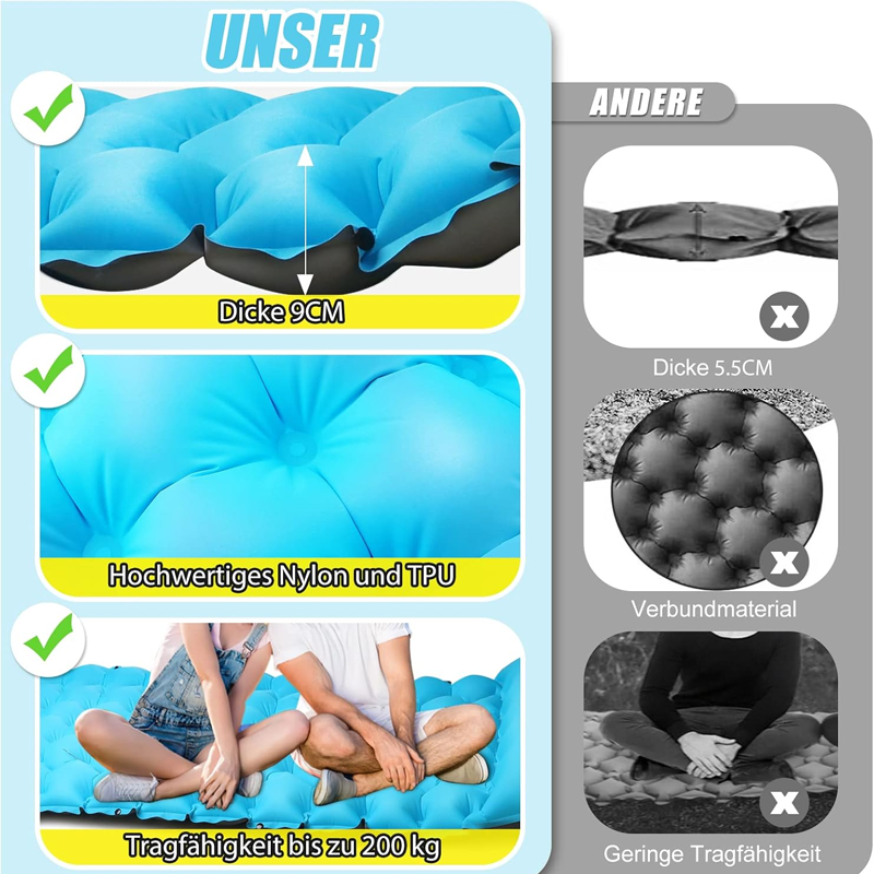 This extra-thick 7-inch camping sleeping pad provides ultimate comfort for your camping experience. The built-in foot pump design allows for quick inflation, and it comes with a comfortable pillow, making it ideal for backpacking, hiking, and tent camping. Lightweight and portable, it ensures you enjoy a quality sleep wherever you go.